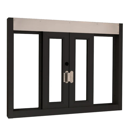 This manual transaction window has bi-parting, self-closing sliders that provide a service opening for the largest of products. Doors open manuall...