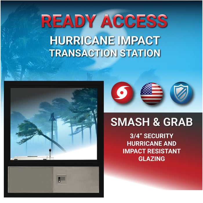 Ready Access 603 | 47 ½”(W) x 58 ½”(H) Security Combo Transaction Window | Hurricane Resistant | Large Product Drawer